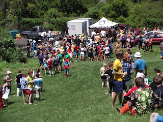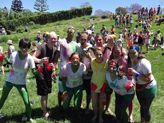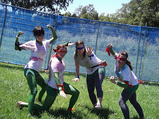 I woke up nice and early the next morning to begin suiting up for ICC Recovery. Now I have already written a post about Cromwell recovery, but here's the difference between the two. ICC recovery is open to all college students and is held in a field for an entire day. They serve goon and juices, UDLs (mixed drinks in a can), and beer and lunch about halfway through. Music was going constantly. The theme was Incredible Cartoon Characters and Hannah, Liz, Megan and I dressed as the Teenage Mutant Ninja Turtles. We made masks out of ribbon and got green briefs to wear. Megan and I created shells out of the package her mom sent her (cough hint hint mom) and then painted our entire bodies green. This was one of our best decisions because had I not put paint all over I would have gotten the worst sunburn of my life, like Phil. Instead I just got a stupid looking burn on my face and the back of my neck. The greatest part of ICC Recovery was the tradition of spitting colored alcohol at each other. Yes, this is disgusting and unsanitary, but it is SO MUCH FUN. You bring colored food die with you to the event and then pour some in every drink you get. Then, you spit. Or pour, or dump out entirely on your friends. It was great, a typical Australian afternoon.
