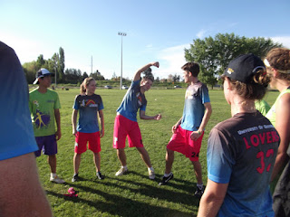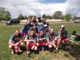 As I mentioned in earlier posts, two weekends ago I went to the Australian Mixed Ultimate Championships with the Ultimate lovers. After a 13 hour drive down to Bathurst, a few teammates and I set up camp in a cabin in an RV park. I really enjoyed our accommodation because I am quite fond of camp grounds thanks to summers spent camping with my family. We had our own bathroom and kitchen area and the weather was cooler in Bathurst than it was in Brisbane, which I appreciated. We woke up the next morning and donned our brand new jerseys and shorts (which were awesome). That day we played some beautiful Ultimate as well as some fun new spirit games with the other teams. Some highlights of the weekend include getting to play in the rain and the mud, having an amazing group of teammates, eating delicious food supplied by the tournament directors, and getting to support our fellow Queenslanders on the sidelines during their games. Oh, and the party was awesome. My team went dressed as miners. For those of you who do not frequent the frisbee scene, going to a tournament is a full-on experience with lots of bonding and amazing times. AMUC definitely achieved each of those and was even better than I had expected.